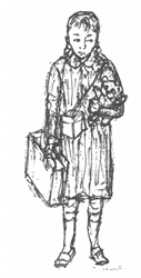 I made this drawing of Britt, the norwegian girl, as Rory would have first seen her when she came to stay..I wanted to show how miserable she must have felt alone in a strange country. She does have her teddy bear with her but as you can see he is not really a particularly cuddly comfort toy.